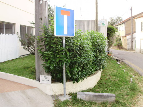 A placa da Rua da Levada, ainda não foi "levada" ? A forma original, pendurada por arames a um sinal de trânsito é sem dúvida peculiar!